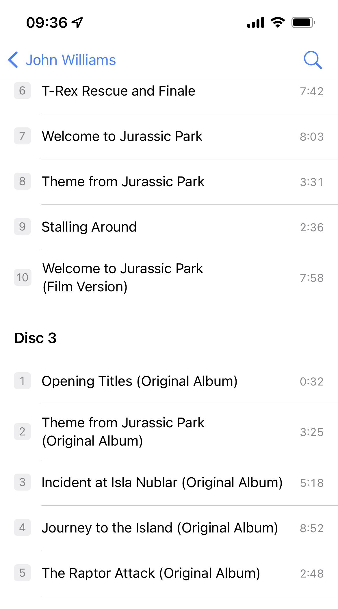 I actually have both as three disc albums. For convenience and weird nostalgia for a collection of digital files, I kept my digital copies of the OSTs and made them the third discs for both. So the album tag is just "Jurassic Park" which has a third disc that contains a rip of the original soundtrack album.