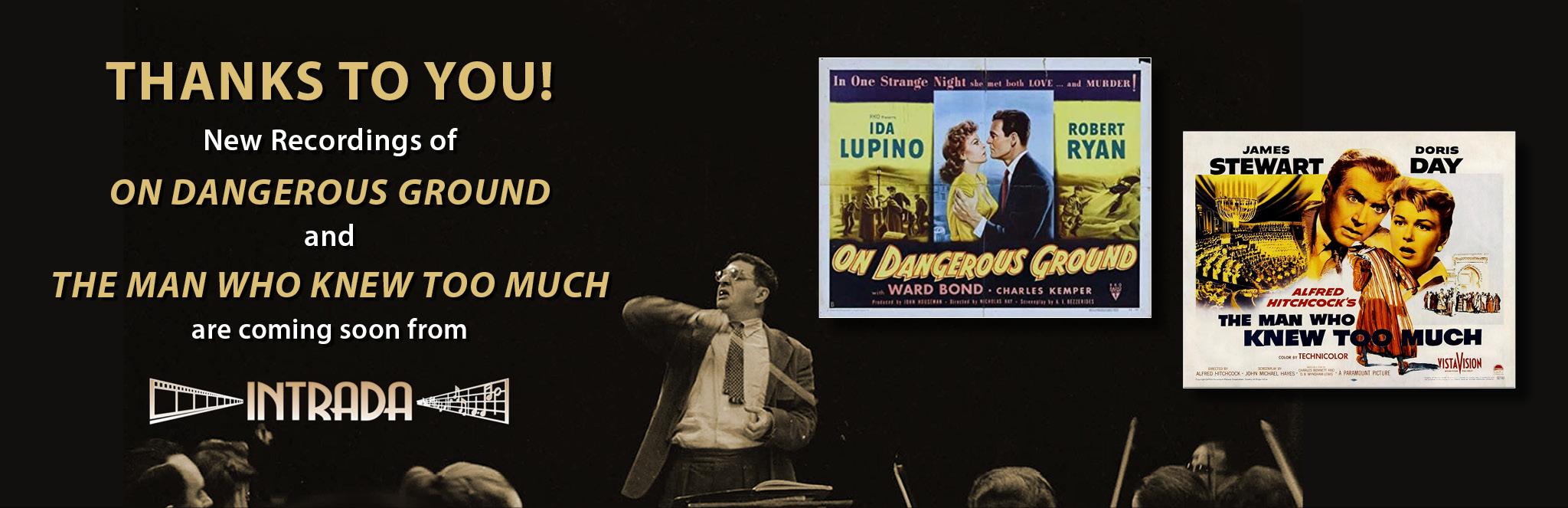 Popular Post Jay 45,320 Posted May 18, 2022 Author Popular Post Posted May 18, 2022 5/17/2022 Bernard Herrmann excitement! Following on our continuing series of successful re-recordings of film music with Maestro William T. Stromberg on the podium and myself tapping him on the shoulder every time we want more French horns in bar 27, we’re readying the scores and parts to two incredible scores Herrmann scored in the fifties: Alfred Hitchcock’s The Man Who Knew Too Much (1956) and On Dangerous Ground (1951). Only a brief portion of the Hitchcock score has been previously recorded, Now listeners will finally have all of the music Herrmann composed, including four minutes of music never-before-heard that was scored but then dropped from the finished film! And that “Prelude” is one of his most exciting with brass and tympani getting center spotlight. Some of the quieter cues with James Stewart searching for his kidnapped son are extraordinary as well. On Dangerous Ground of course features the ferocious “Death Hunt” which we’ll be doing replete with eight horns, six trumpets and trombones and two tubas! In balance are the numerous lovely passages for solo viola d’amore and strings. All-in-all an incredible array of Herrmann music. We’ll post the official Kickstarter goal and launch here in just a few days as we complete the session line-up requirements for this extraordinary recording event. We’ve got a nice track record with this series, thanks to the support from all of you! http://www.intrada.net/phpBB2/viewtopic.php?f=2&t=8915 Yavar Moradi, MikeH, crocodile and 1 other 2 2