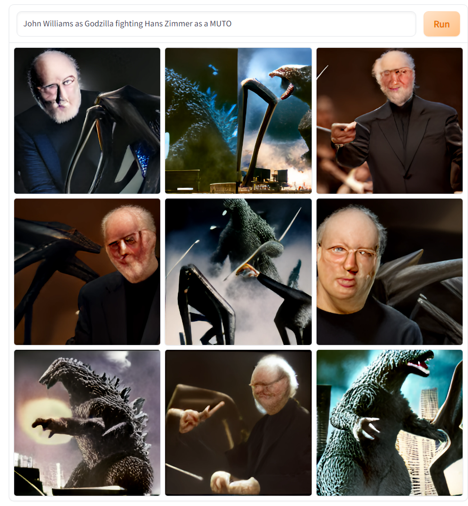 BB-8 5,738 Posted October 8, 2024 Posted October 8, 2024 3 hours ago, Mr. Hooper said: We need @BB-8 to work his magic and Photoshop us a picture of JW as Godzilla fighting HZ as a MUTO... I have asked our treasured friend "DALL-E mini" for some help with this (not wasting more time in this thread): Mr. Hooper and Holko 1 1