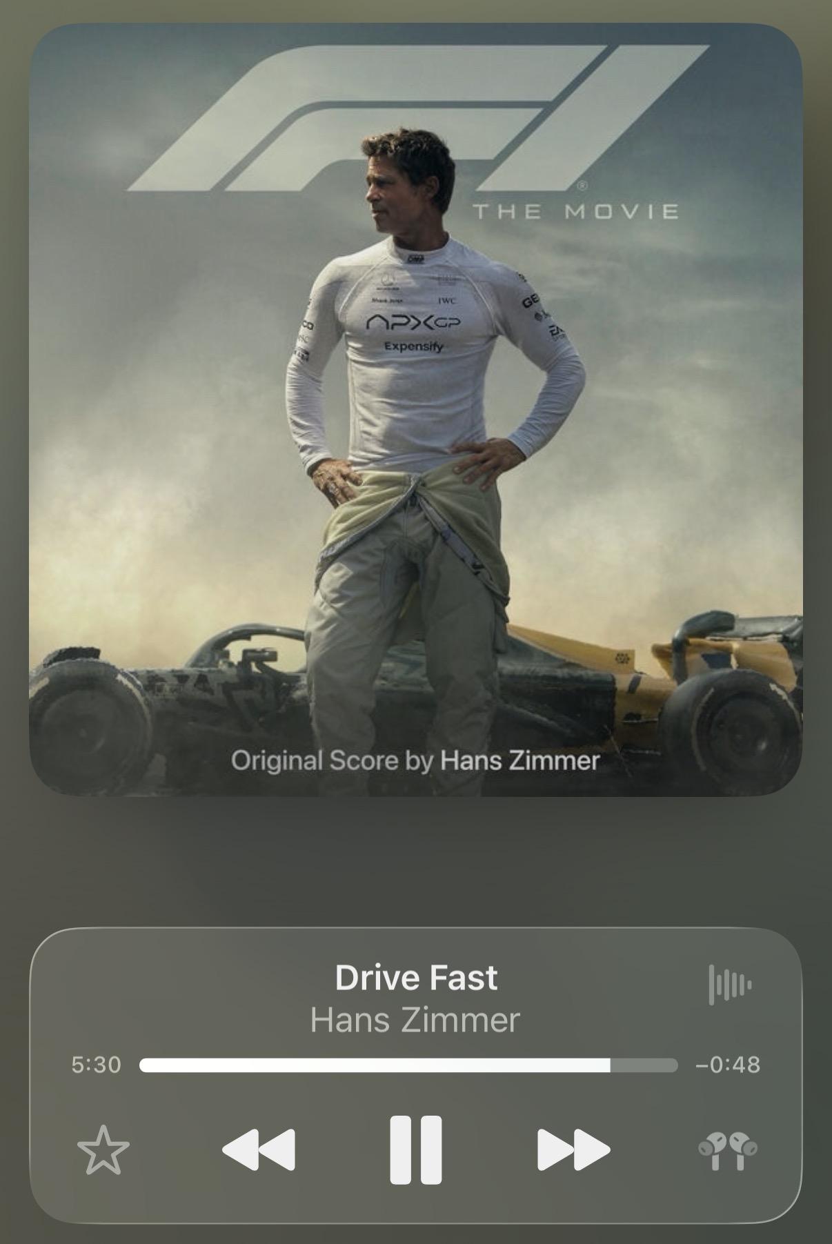 Tom Guernsey 3,653 Posted September 30, 2025 Posted September 30, 2025 F1. File under “scores that are exactly as you expect but not in a bad way”. The sort of film Hans was born to score. Not as good as Rush but still the kind of power anthem rock score you sometimes need in your day. In amongst an almost continuous stream of Bernard Herrmann in my case. Highly amused by this track title though… there literally isn’t any other goal in F1 so is quite impressively redundant. Although disappointing that there aren’t tracks such as “mind out for that pedestrian” or “shit I’m in the wrong fucking lane”. Of course this track is probably only rage bate to the anti-Hansers.